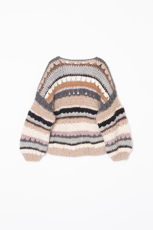 [Maiami] Alpaca Brioche Loose Fit Pullover - Sweater Grey/Sand