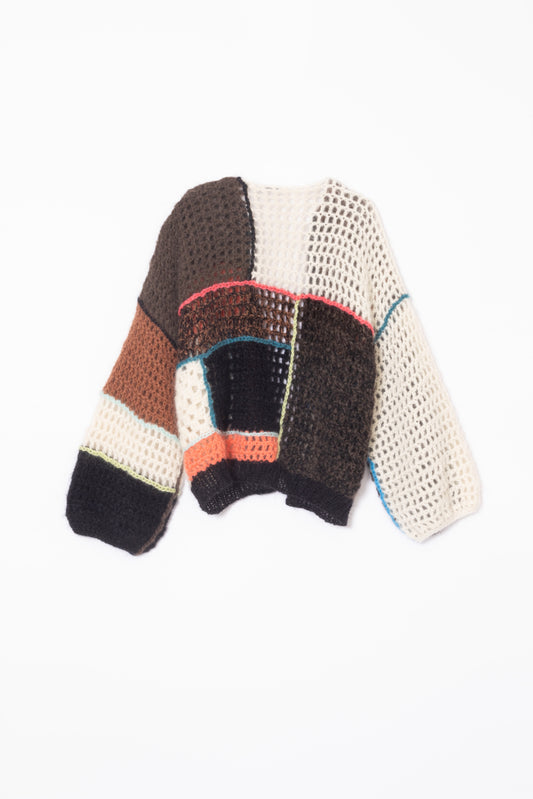[Maiami] Crochet Patchwork Bomber Cardigan - Dark Brown