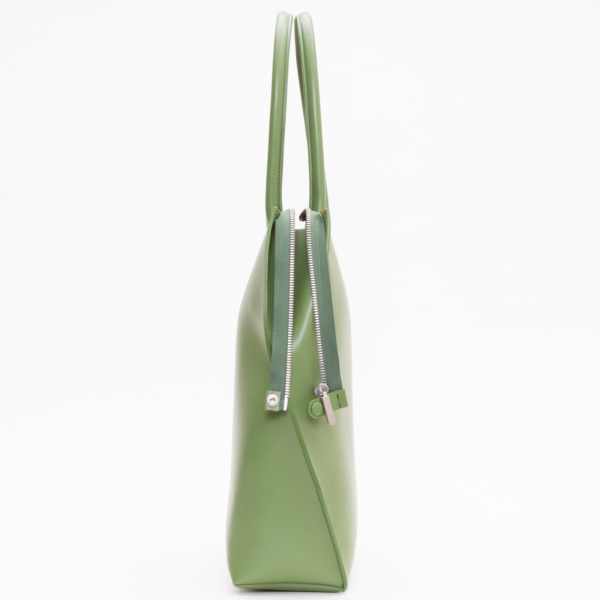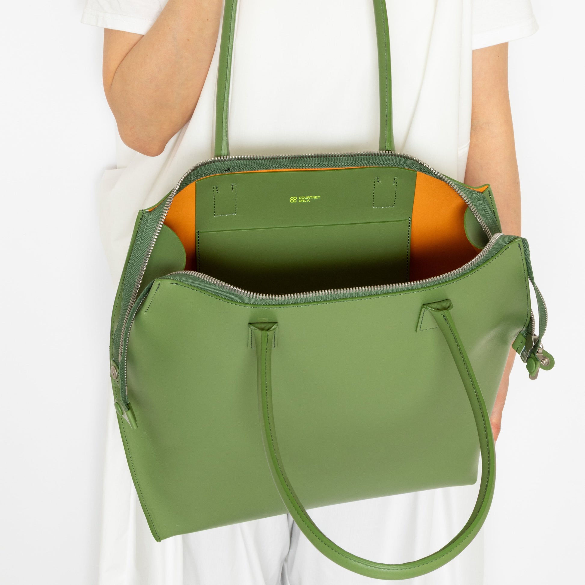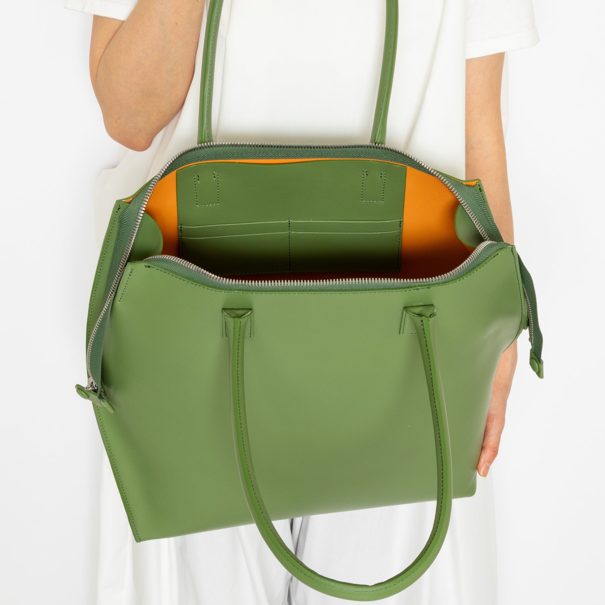【COURTNEY ORLA / コートニーオーラ】ZIP/SLOPE tote L w/shoulder handle Smooth L. - Army