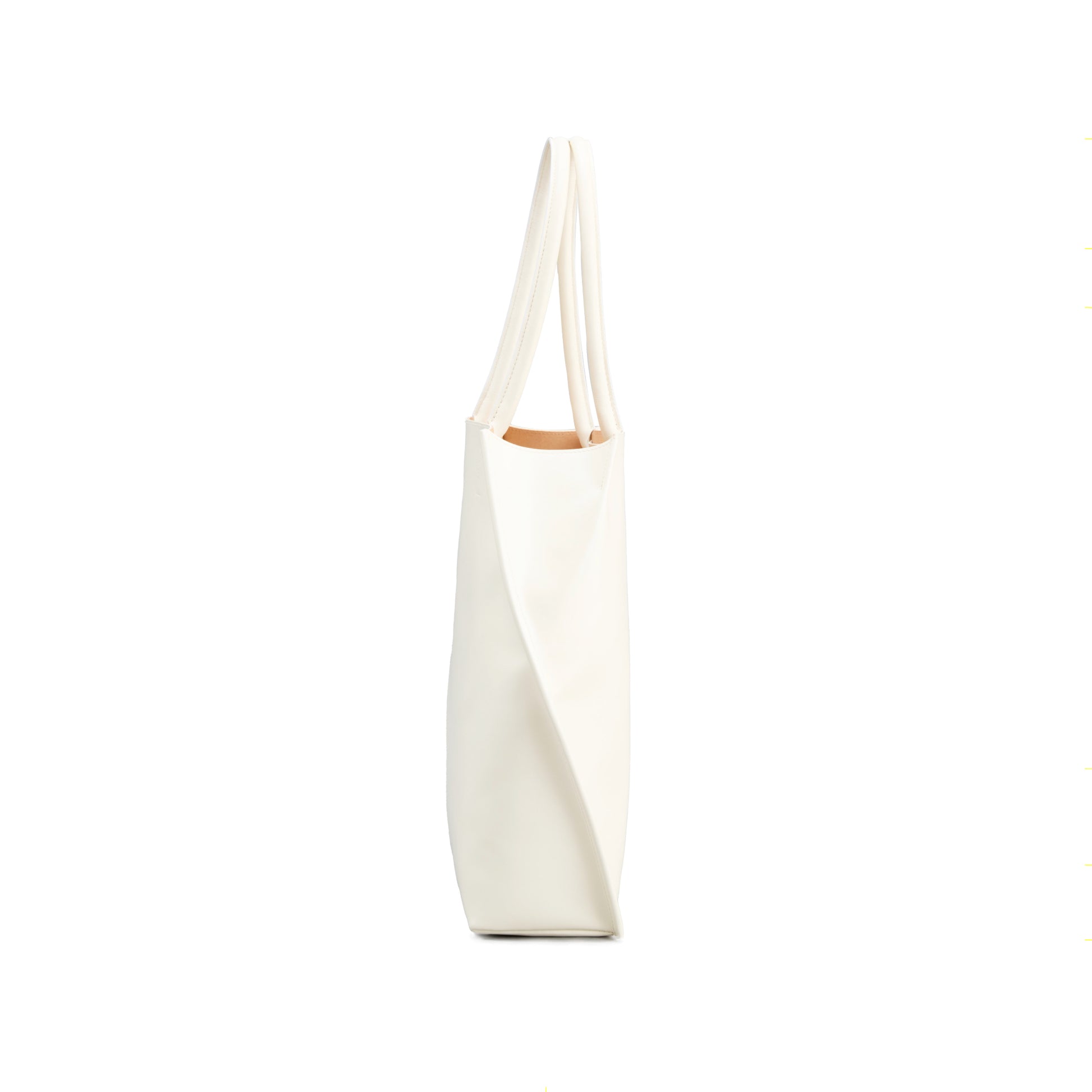 [Courtney Orla] SLOPE tote L with shoulder handle PVC/Pig L./Cow L. - Ivory/Ivory