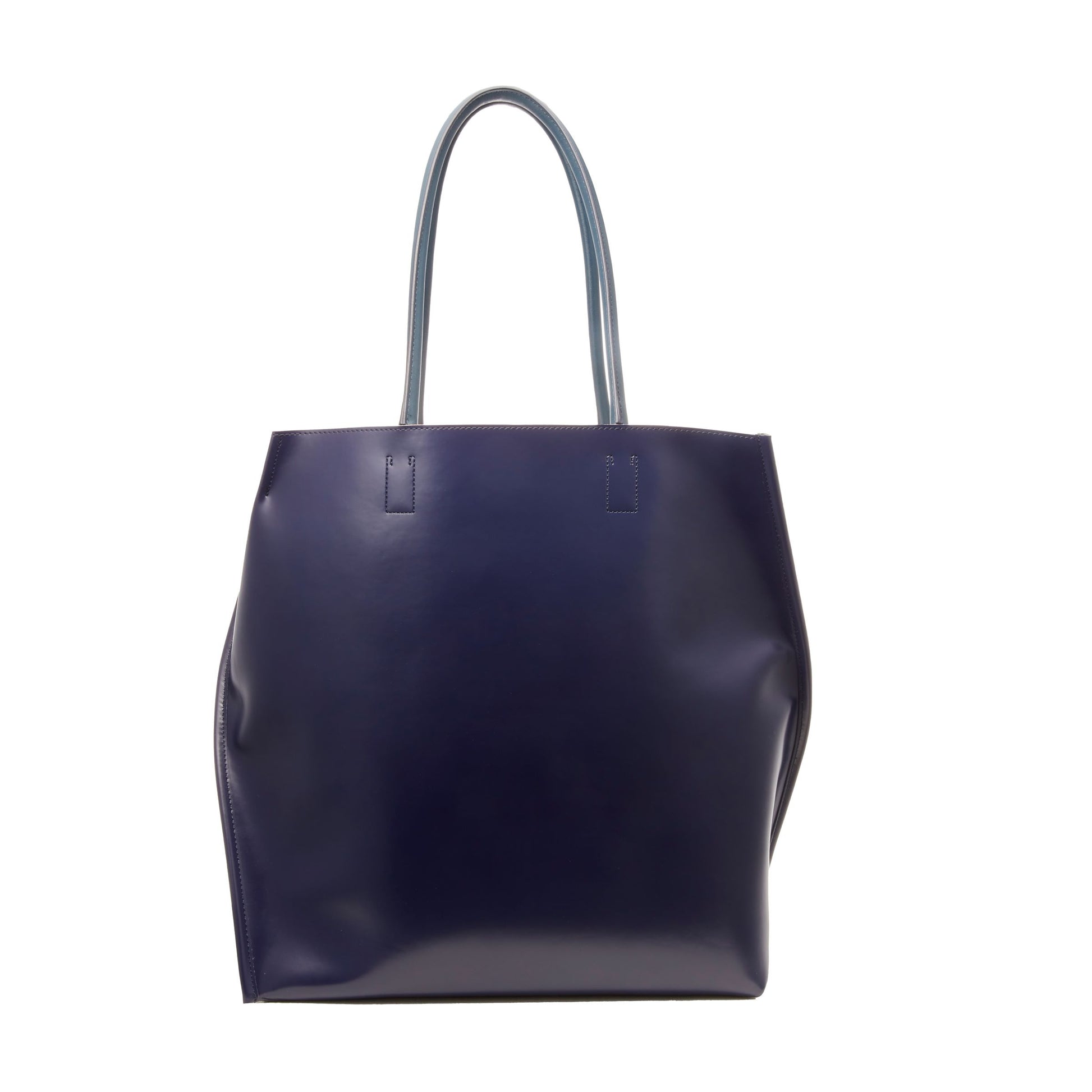 [Courtney Orla] SLOPE tote L with shoulder handle PVC/Pig L./Cow L. - Navy/Ivory