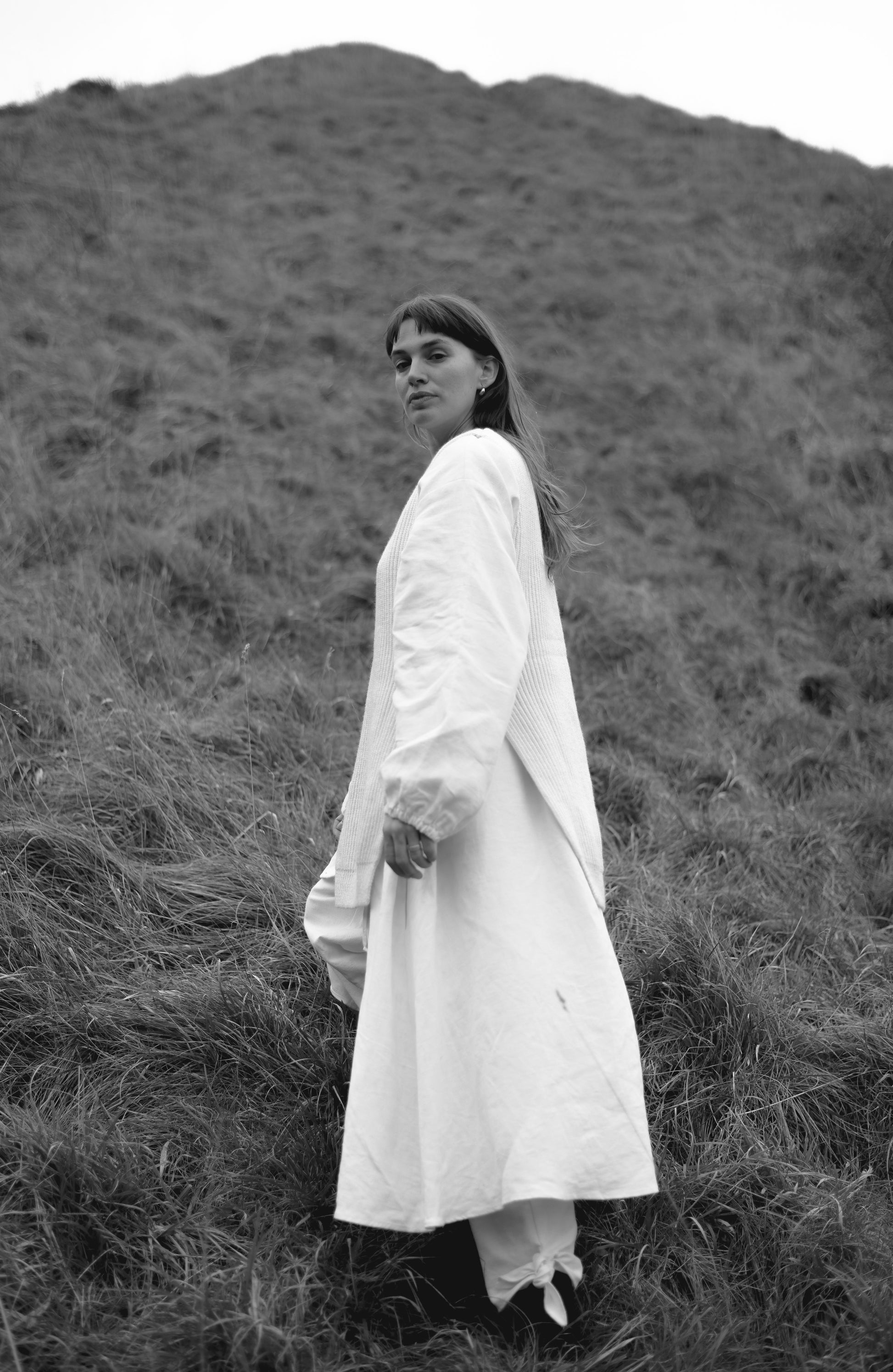 両サイドの深いスリットが特徴的なニットベスト。ドレスやブラウスにレイヤードが可能です。