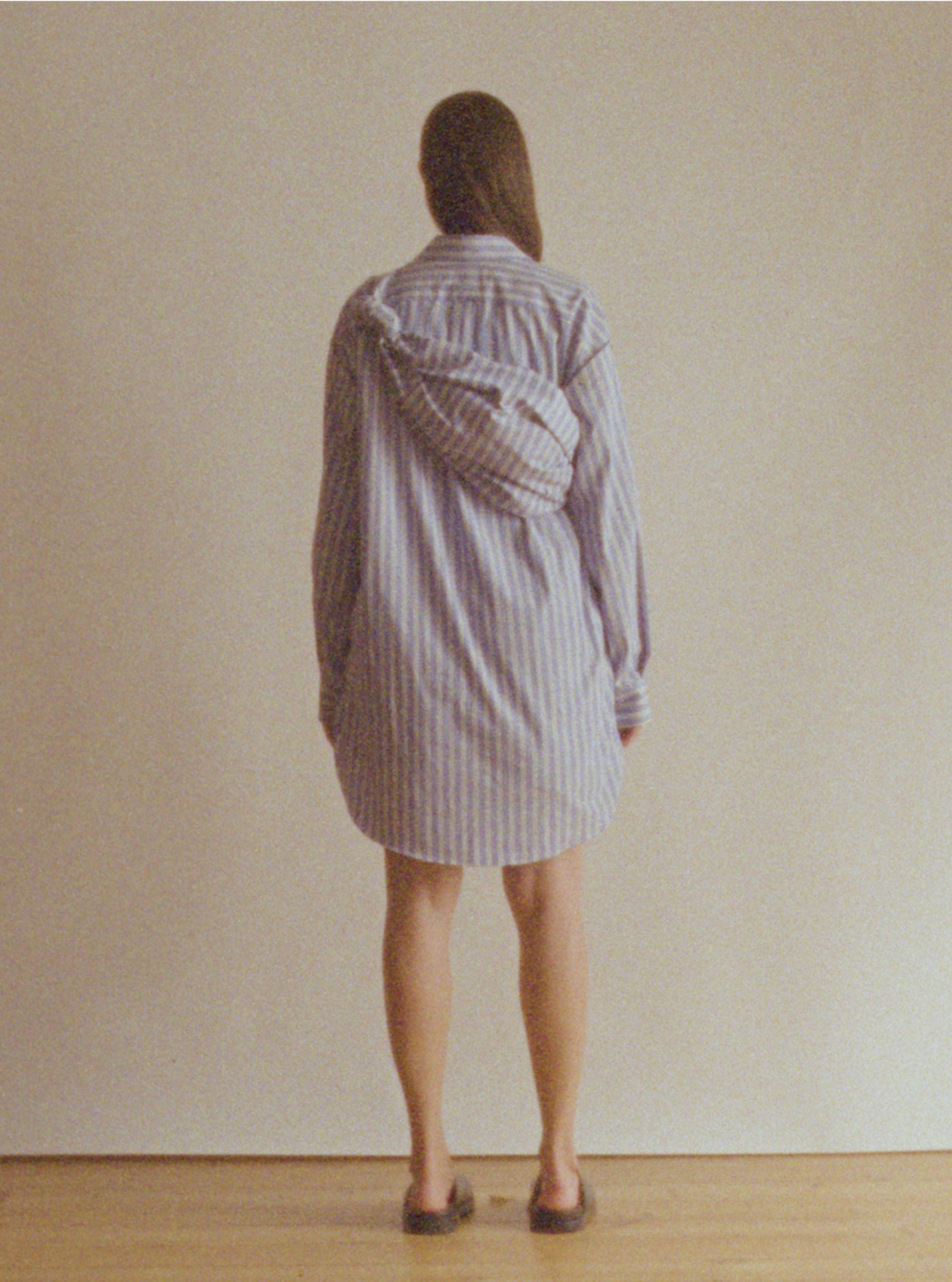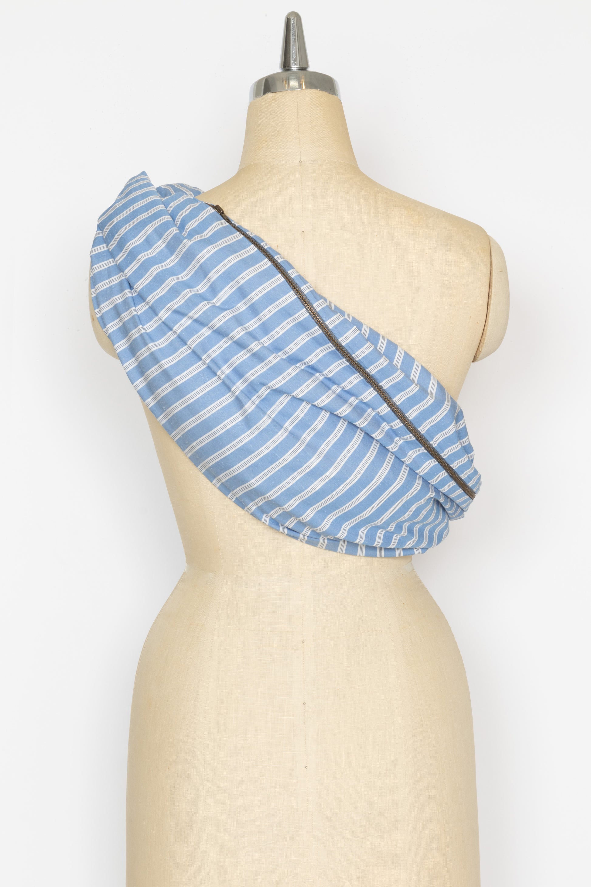 シャツの袖のデザインを使用したショルダーバッグ。結び方で長さの調整が可能です。