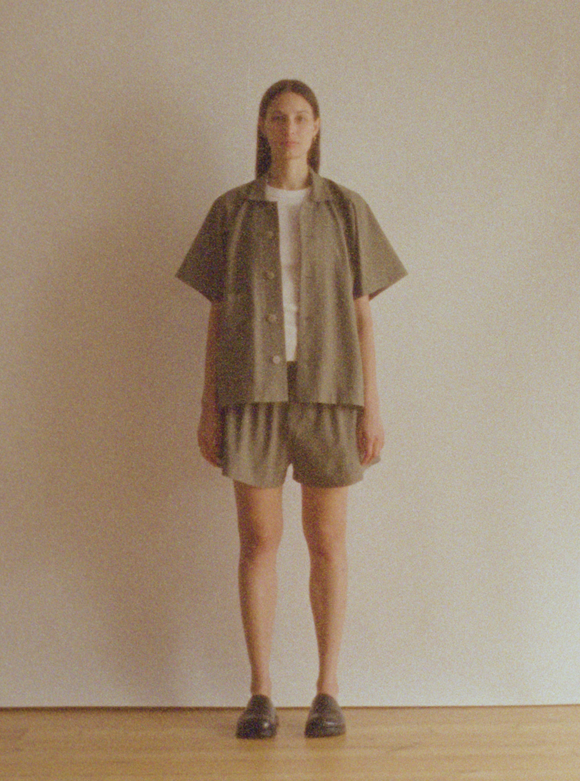 パッチポケット付きのユニセックスショーツ。同素材のCamp Collar Shirtとセットアップで着用いただけます。