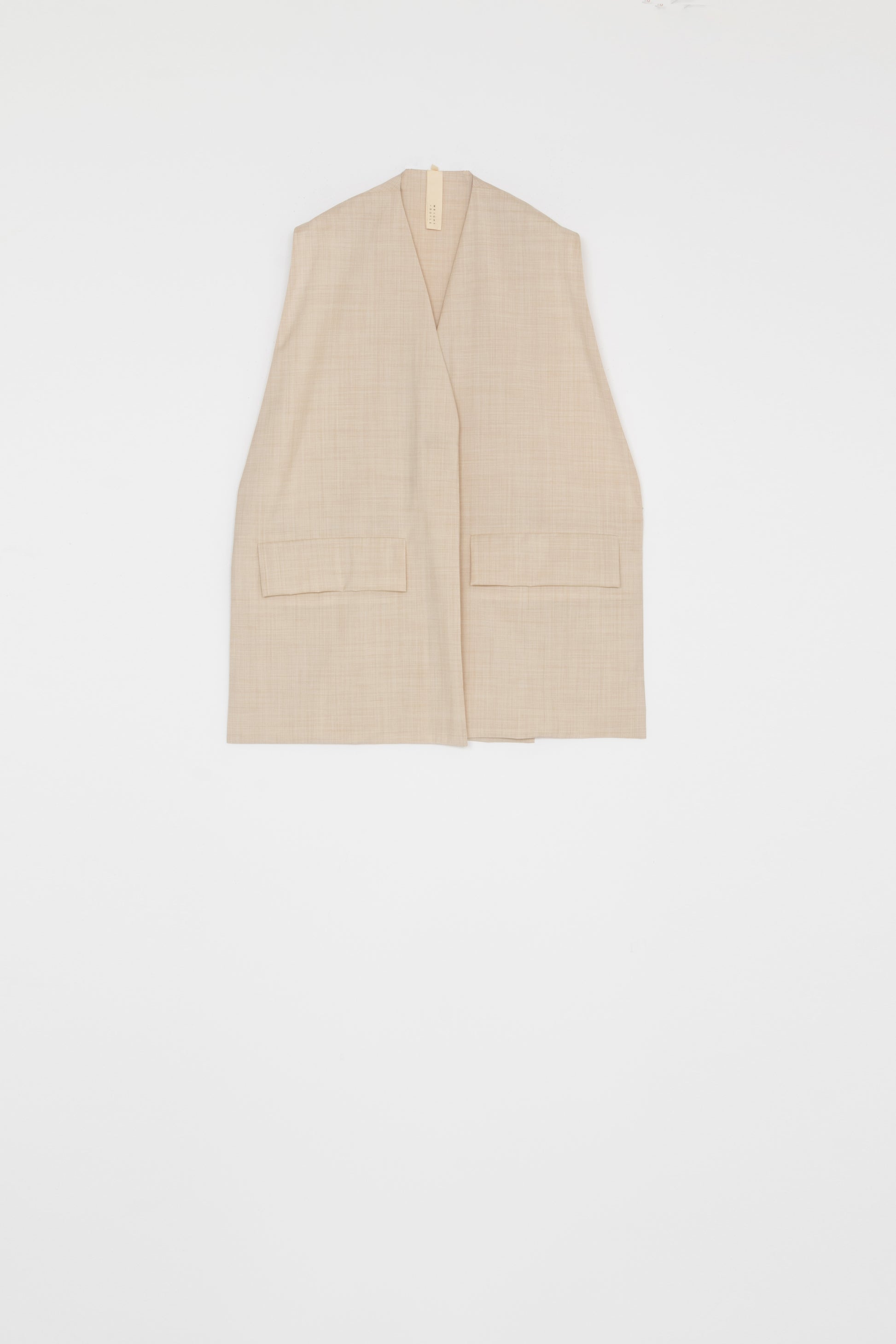 ユニセックスのサマーウールベスト。ストラップでサイドを調整できます。フロントにフラップポケット付き。