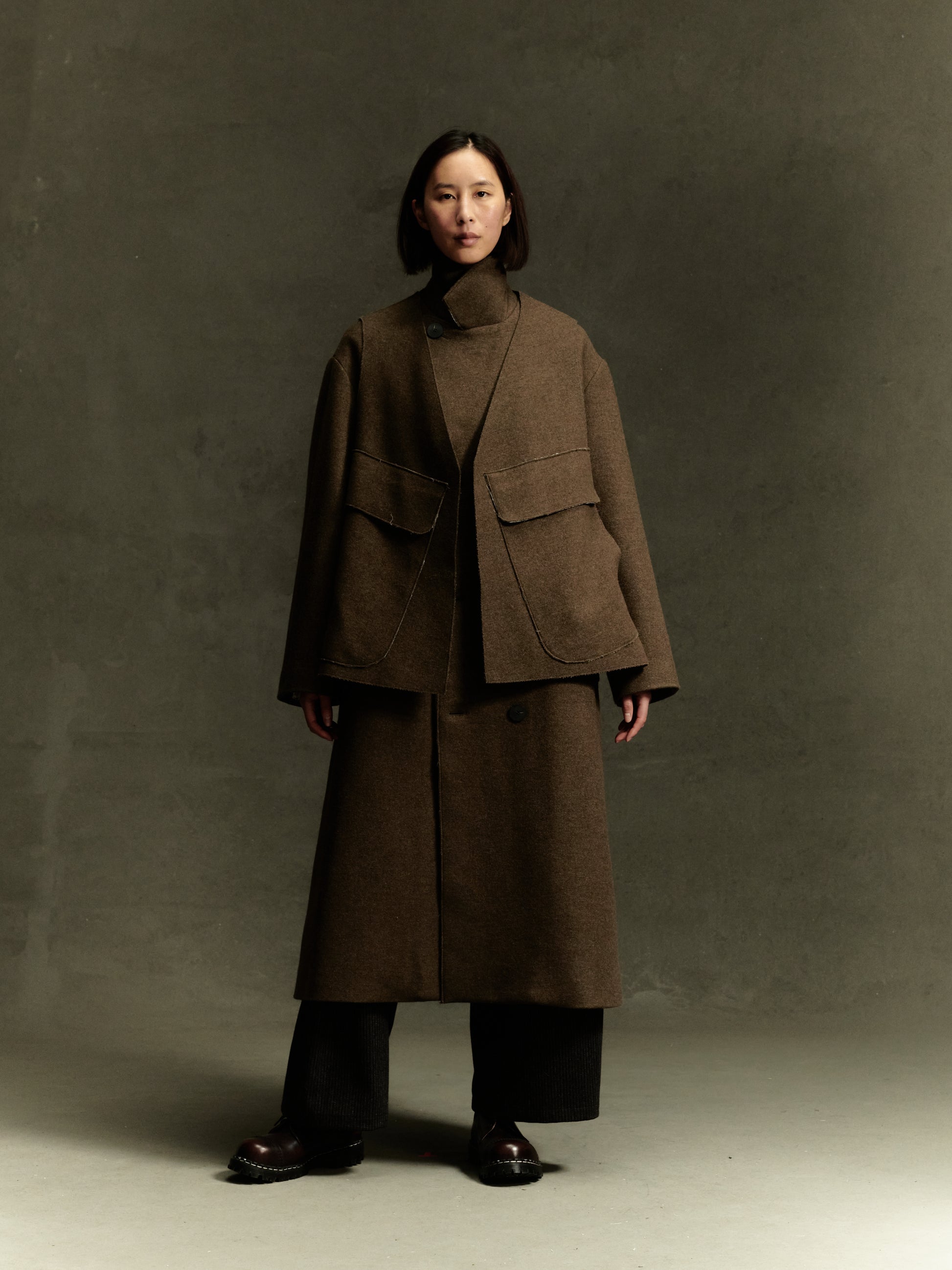 『JOSEPH COAT』の上に着用できるようにデザインされており、サイドにボタンが1つ付いています。