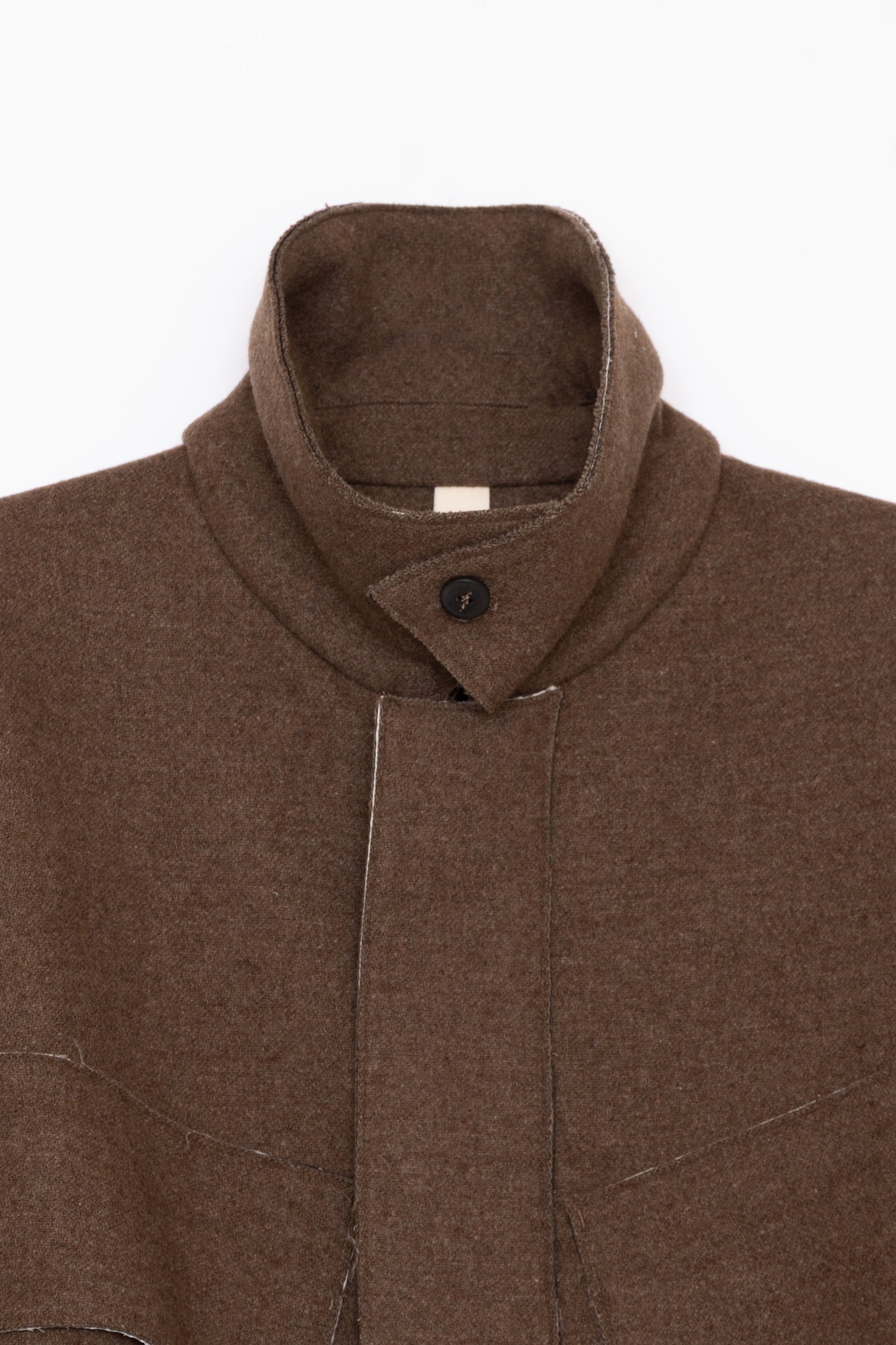 フロントジップのユニセックスジャケット。フラップ付きの大きなポケットはサイドからも手を入れることが可能です。袖にはダブルタックがあしらわれており、立体的なシルエットを生み出しています。