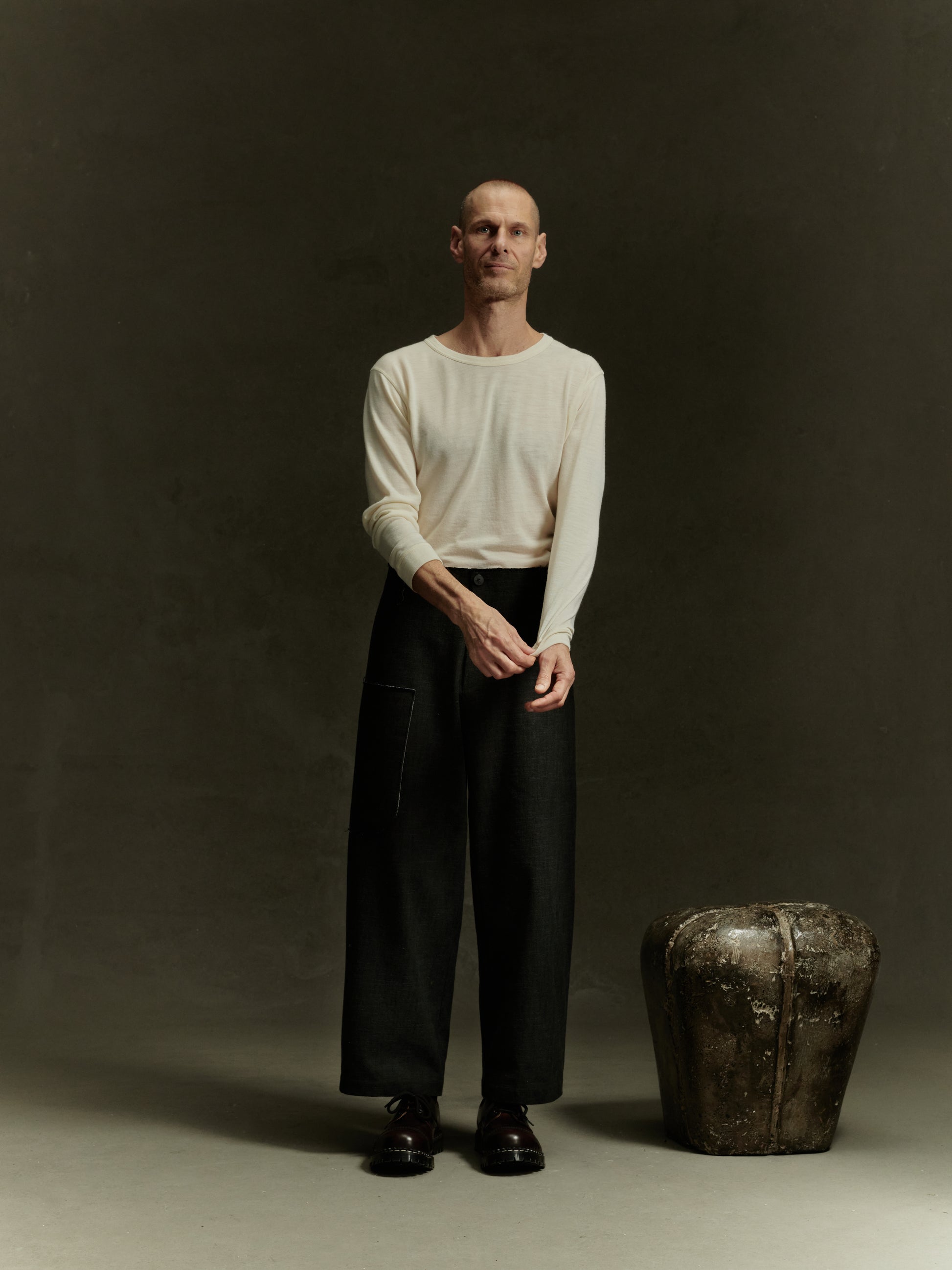 メリノウールを使用したクルーネックシャツ。レイヤースタイルのインナーとしても、1枚で着ても快適なようデザインされています。